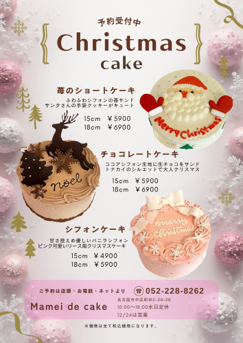 全3種類。オーダーケーキ専門店ならではの可愛いデザインのクリスマスケーキとなっております!